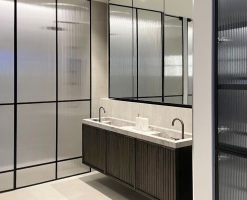 Glass splashbacks provide a contemporary and minimalist finish that works in both new builds and renovations. Their reflective surface can make spaces feel larger and brighter, creating a clean, modern aesthetic. Whether you’re going for a monochrome design or a bold, custom-coloured splashback, glass elevates the style of any kitchen or bathroom.